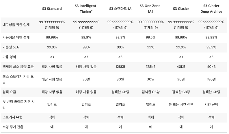 - Glacier Deep Archieve : 12시간 이상의 retrieval time (가장 저렴)