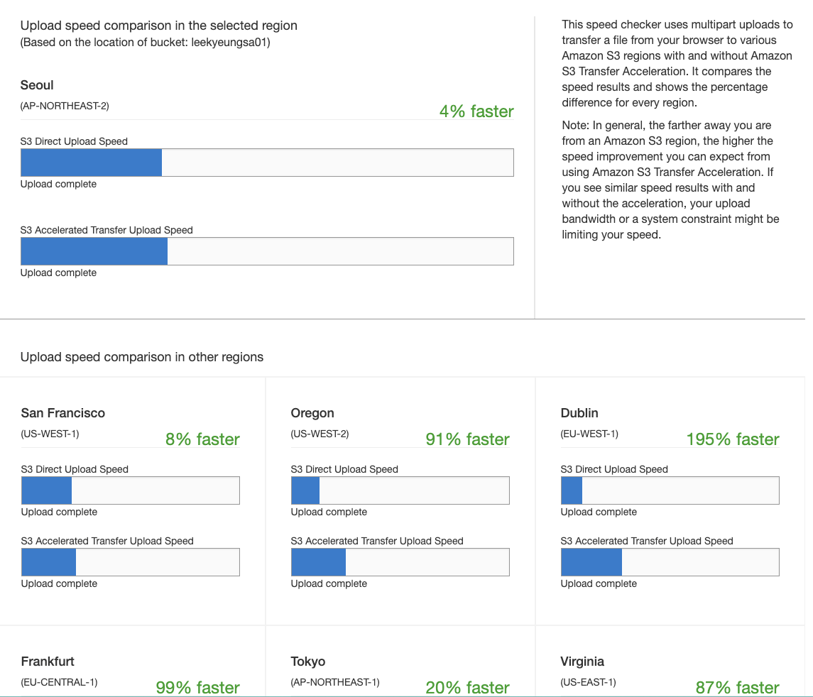 https://s3-accelerate-speedtest.s3-accelerate.amazonaws.com/en/accelerate-speed-comparsion.html?region=리전origBucketName=버킷이름